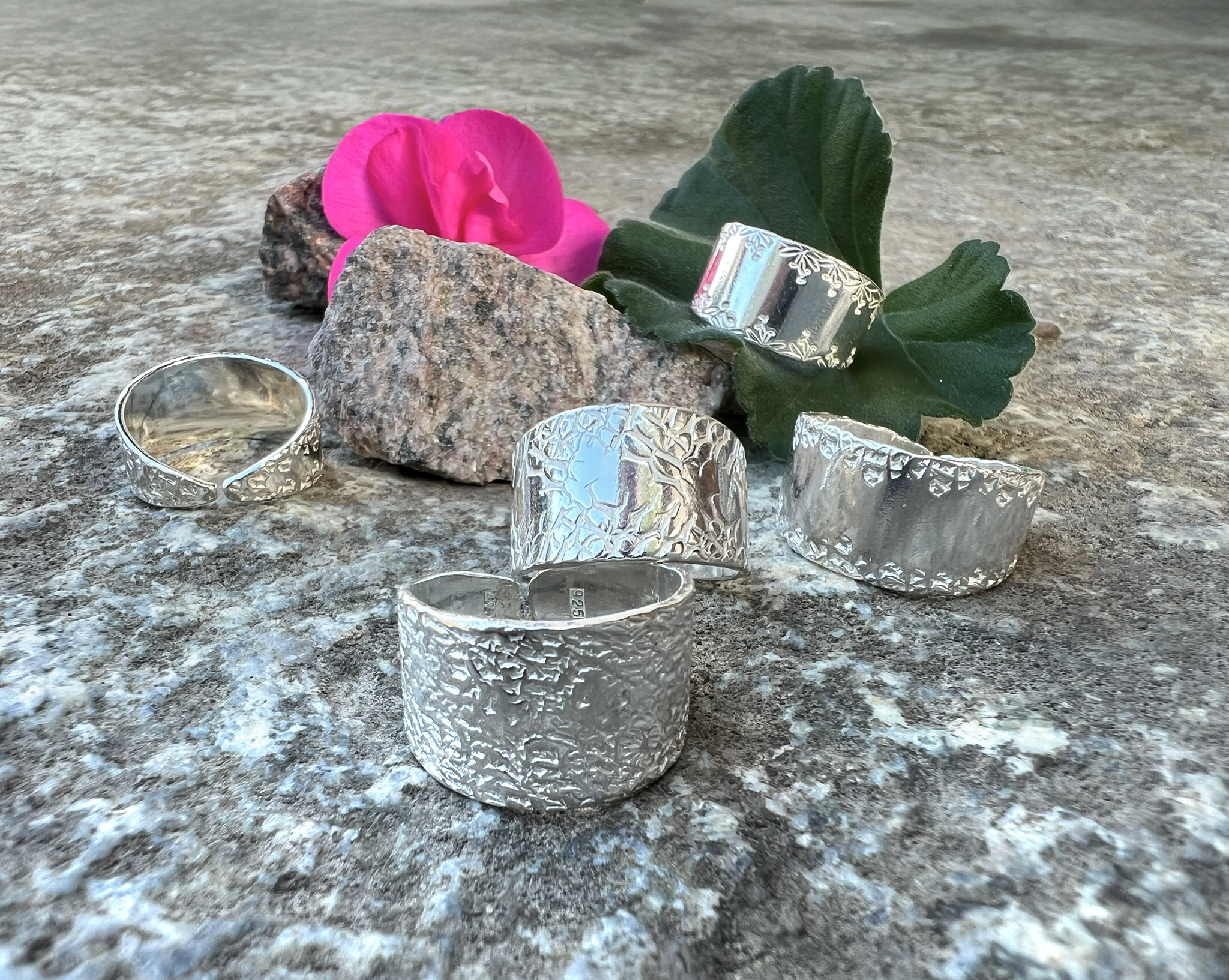 Här kan du se några exempel på vad som formats i smedjan – alla smycken är unika, handgjorda och skapade med mycket glädje (och ibland med tassavtryck).